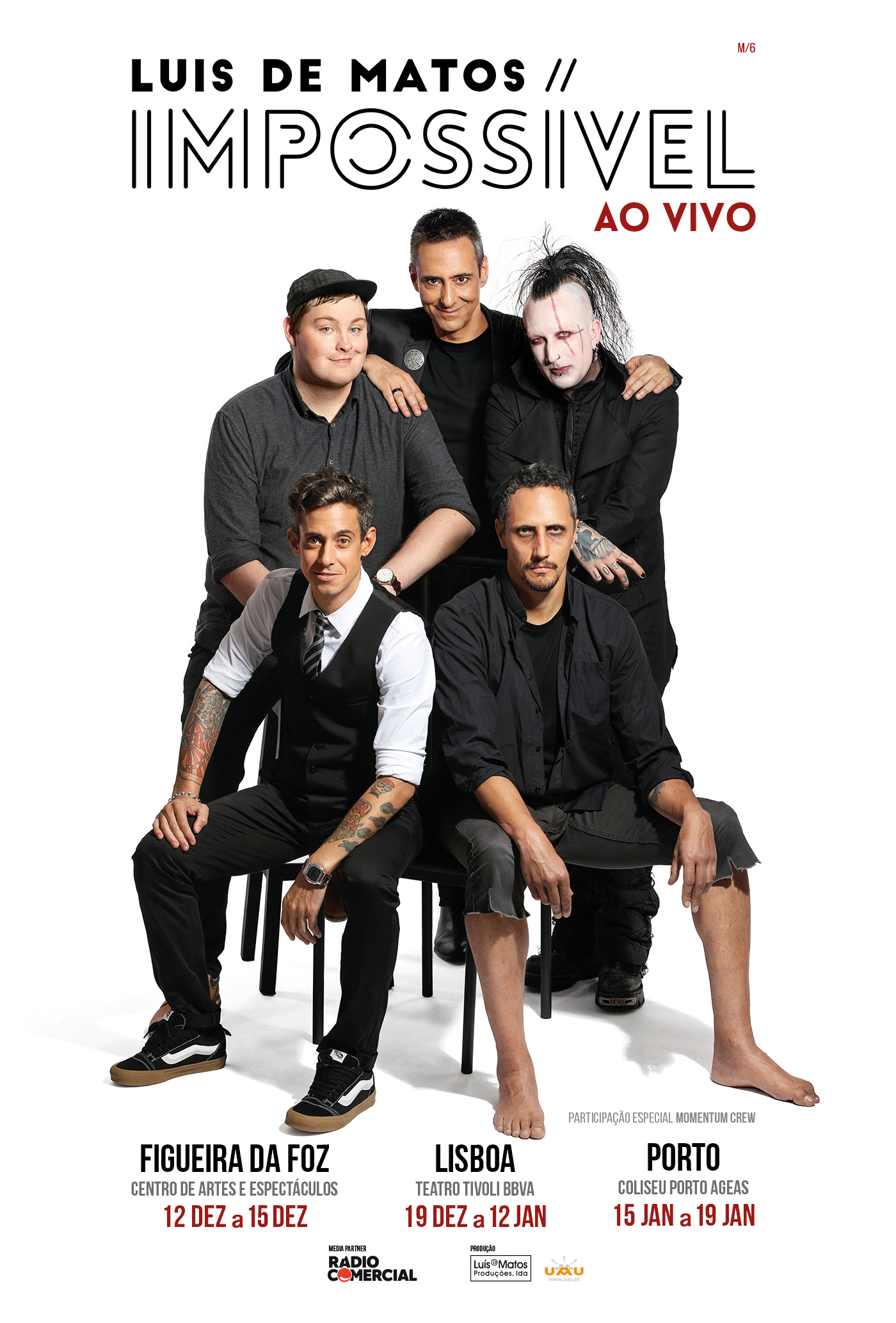 “Luis de Matos IMPOSSÍVEL Ao Vivo” regressa com novas ilusões e um novo e extraordinário elenco. O espectáculo que todos os anos bate recordes de público, volta a acontecer numa edição ainda mais forte e surpreendente, numa experiência única para toda a família e que se reinventa em cada ano. “Luis de Matos IMPOSSÍVEL Ao Vivo” acontece no Centro de Artes e Espectáculos (Figueira da Foz), no Teatro Tivoli BBVA (Lisboa), e no Coliseu Porto AGEAS (Porto). Acompanhado por Joana Almeida e pelos Momentum Crew, Luis de Matos terá ao seu lado quatro dos maiores mágicos mundiais da actualidade, com o melhor de cada um a enriquecer uma experiência inesquecível, para sonhar, sorrir e aplaudir. “Luis de Matos IMPOSSÍVEL Ao Vivo” é um espectáculo imperdível, para toda a família, para ver e oferecer!